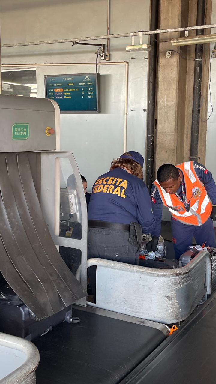 Os Analistas-Tributários ampliaram o controle de bagagens e passageiros que desembarcaram nesta tarde em voo procedente de Lisboa, Portugal.