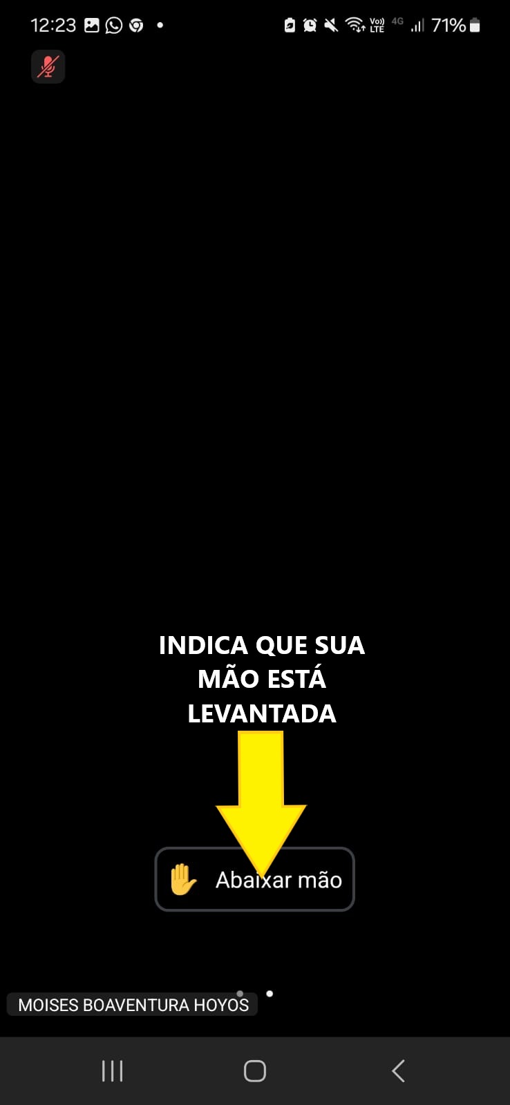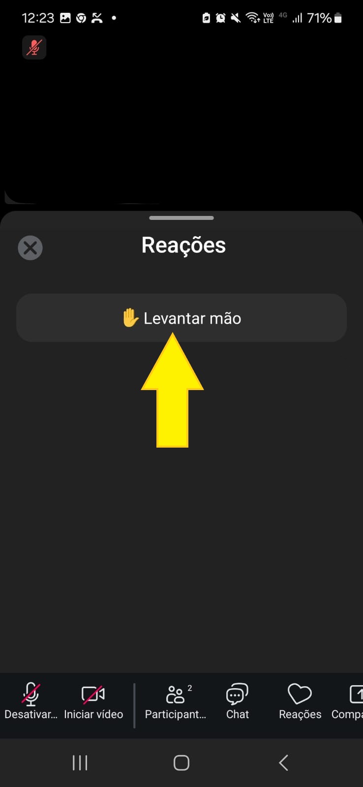 Para fazer uma pergunta ou comentário utilize o recursos Levantar a mão. Assim, o mediador será avisado do interesse de participação do filiado.