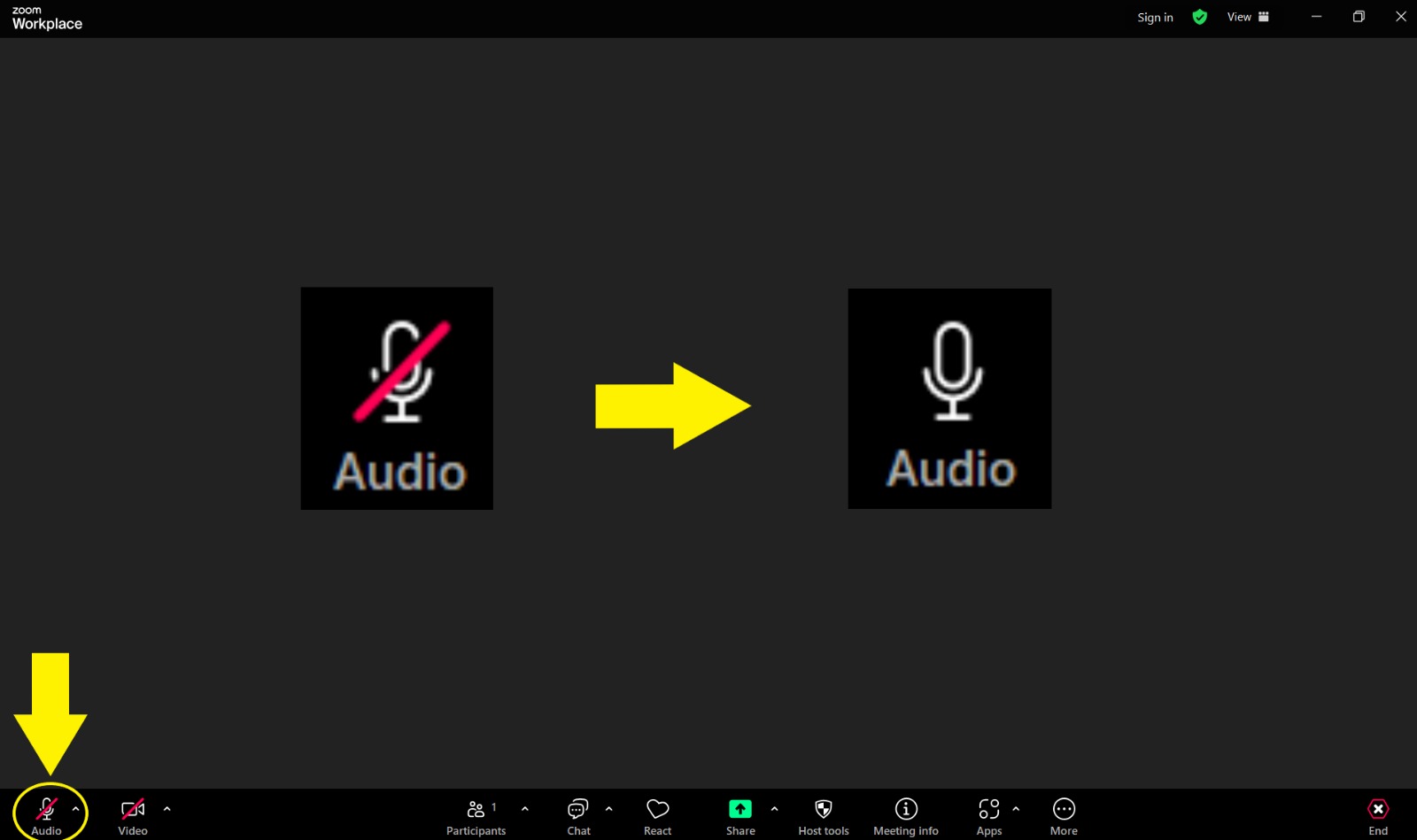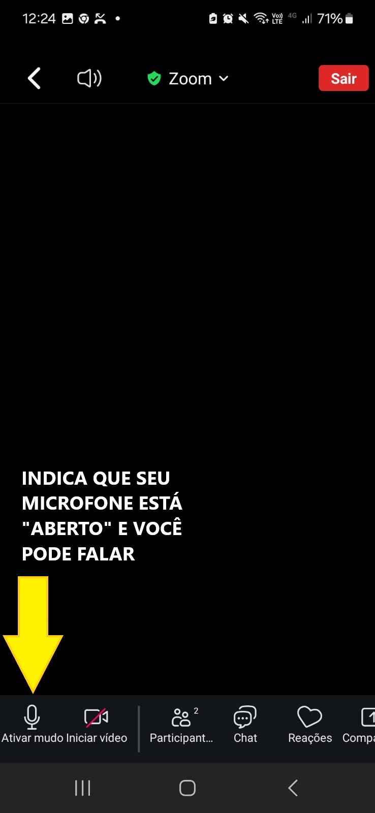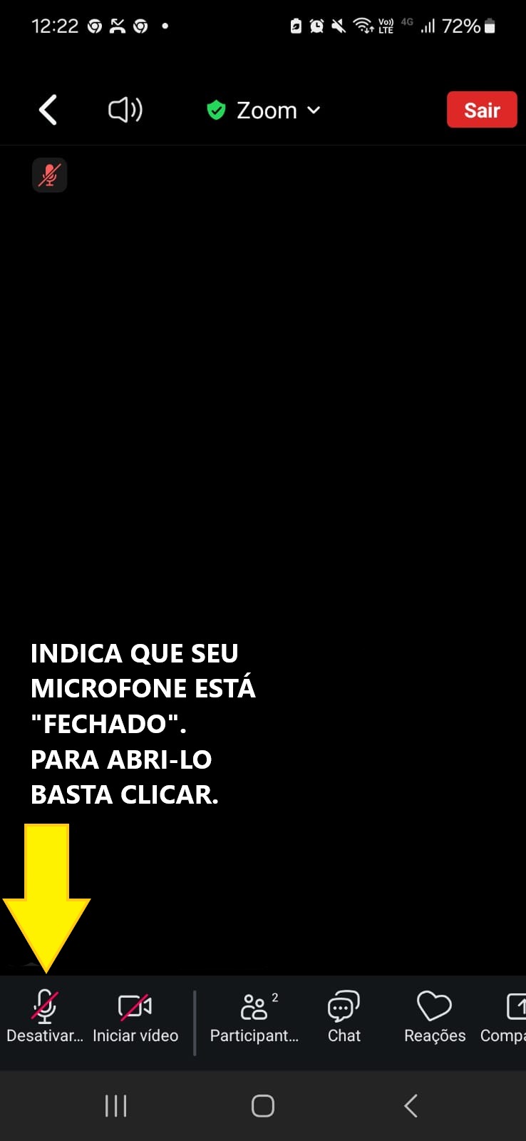 Na parte de baixo da tela do computador, veja o o botão para “Ativar” que está relacionado ao microfone.