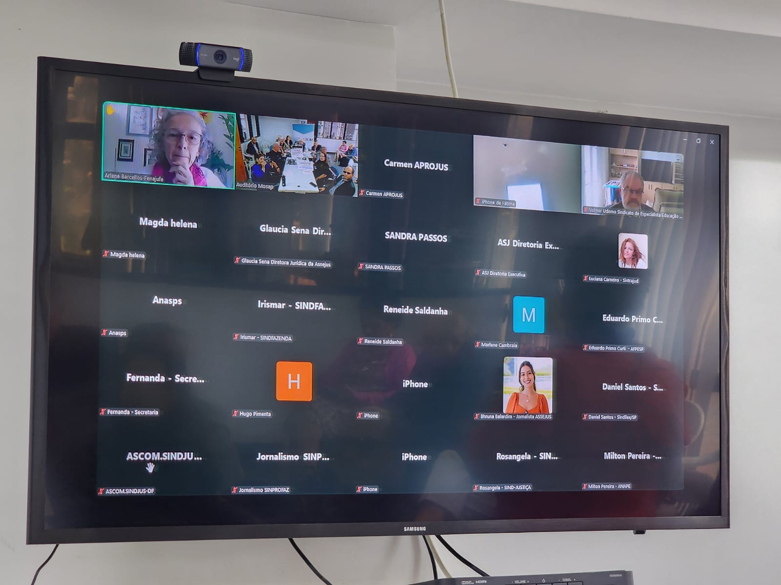 Representando os Analistas-Tributários e as Analistas-Tributárias, as diretoras do Sindireceita, Ieda Miranda (Secretária-Geral) e Marlene Cambraia (Aposentados e Pensionistas) participaram, nessa terça-feira, dia 10, de reunião ordinária mensal do Movimento Nacional dos Servidores Públicos Aposentados e Pensionistas (MOSAP). O encontro foi realizado de forma híbrida, com a presença de entidades de representação na sede do MOSAP, em Brasília/DF, e virtualmente, por meio da plataforma Zoom.