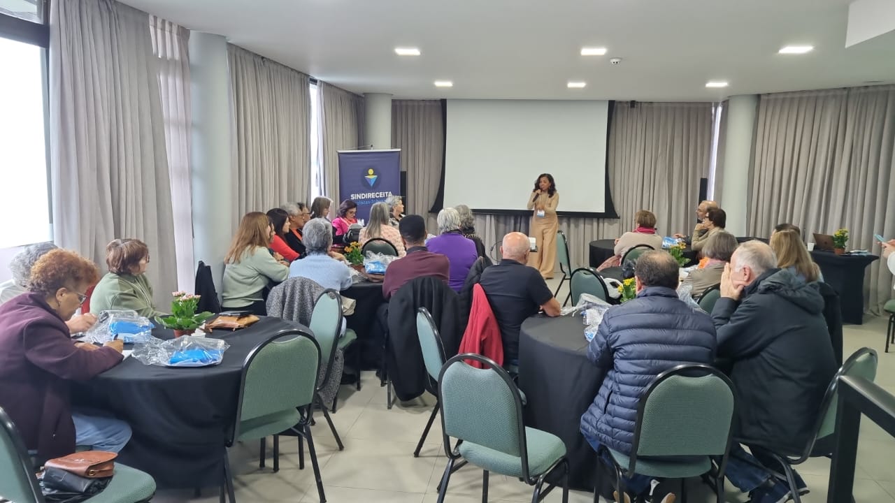 O Conselho Estadual de Delegacias Sindicais do Rio Grande do Sul (CEDS/RS) realizou, no último sábado, dia 14, o VII Encontro de Aposentados e Pensionistas do Rio Grande do Sul. O evento ocorreu no hotel Blue Tree Towers Millenium, em Porto Alegre/RS, e reuniu 30 colegas aposentados(as) e pensionistas, além de membros do CEDS/RS, integrantes da Diretoria Executiva Nacional (DEN) e delegados(as) sindicais do Sindireceita.