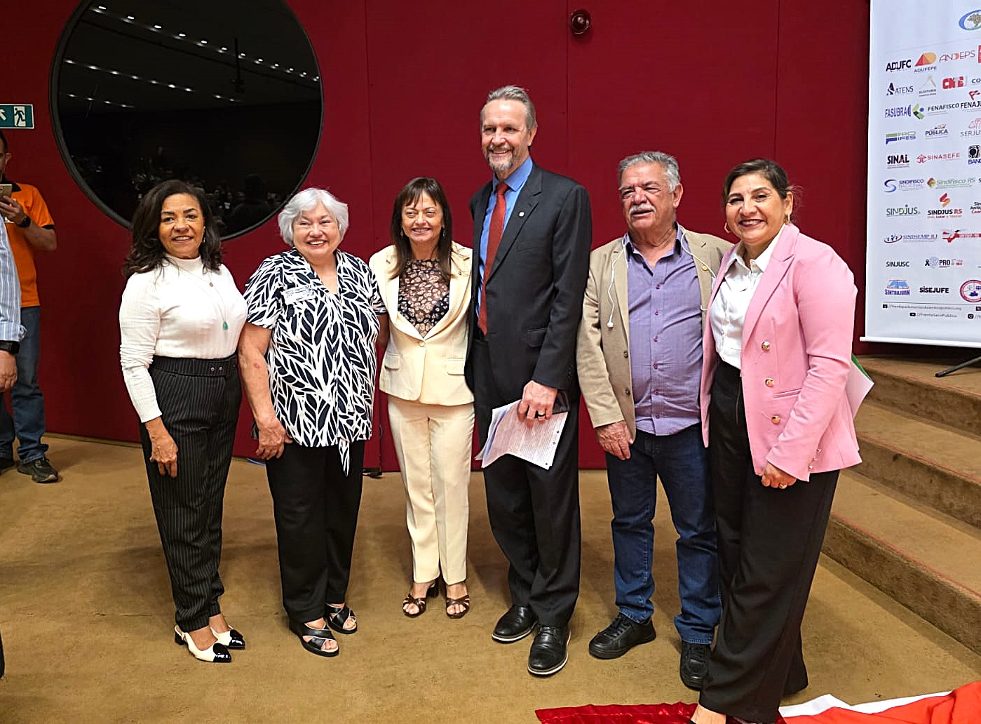Representantes do Sindireceita participaram na tarde dessa terça-feira, dia 8, do Seminário “A Reforma Administrativa”, promovido pela Frente Parlamentar Mista em Defesa do Serviço Público, no Auditório Nereu Ramos da Câmara dos Deputados. Pelo Sindicato, estiveram presentes no evento o presidente da Diretoria Executiva Nacional (DEN), Thales Freitas; a Secretária-Geral, Ieda Miranda; a diretora Marlene Cambraia (Aposentados e Pensionistas); o diretor Afrânio Azevedo (Primeiro Suplente); e a Secretária-Geral da Delegacia Sindical de Brasília/DF, Verônica Oliveira.