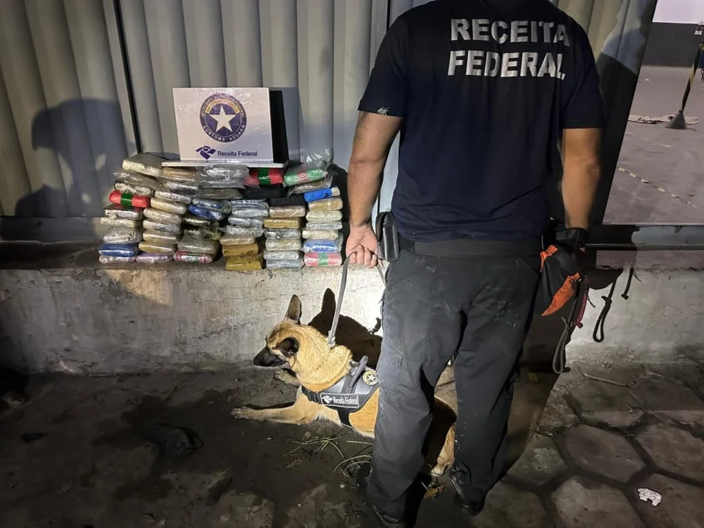 Analistas-Tributários atuaram na apreensão de 55 quilos de skunk escondidos em reservatórios de óleo em Ananindeua, na Grande Belém. A droga estava em uma transportadora e foi achada com ajuda de uma cadela farejadora.