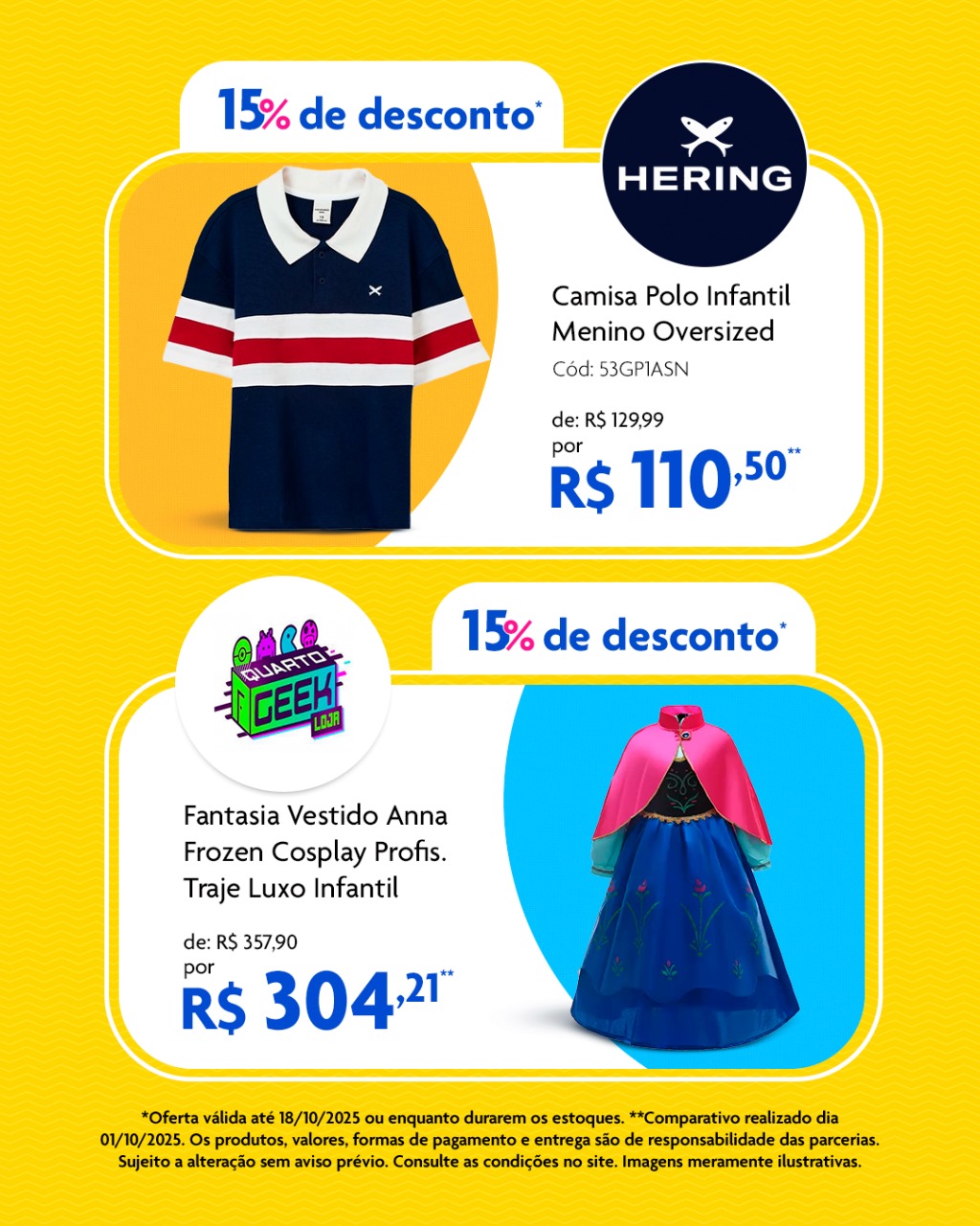 São opções para todos os gostos e idades, perfeitas para tornar essa data ainda mais incrível. Explore as ofertas, escolha com carinho e celebre o Mês das Crianças com economia e afeto!