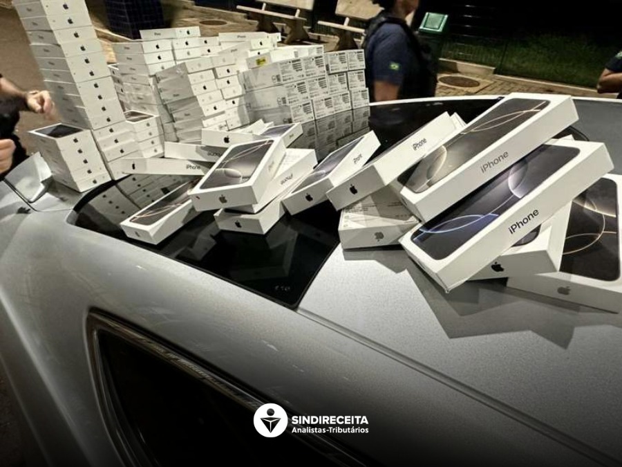 Analistas-Tributários da Receita Federal do Brasil (RFB) atuaram na retenção de centenas de celulares contrabandeados no último sábado, dia 4, durante operação conjunta da RFB e Polícia Militar (PM) na PR-585. A ação teve início à tarde, quando o BPMOA e a Receita Federal solicitaram apoio do 19º Batalhão da PM para abordar um veículo suspeito de descaminho, que seguia de Foz do Iguaçu/PR para Toledo/PR.