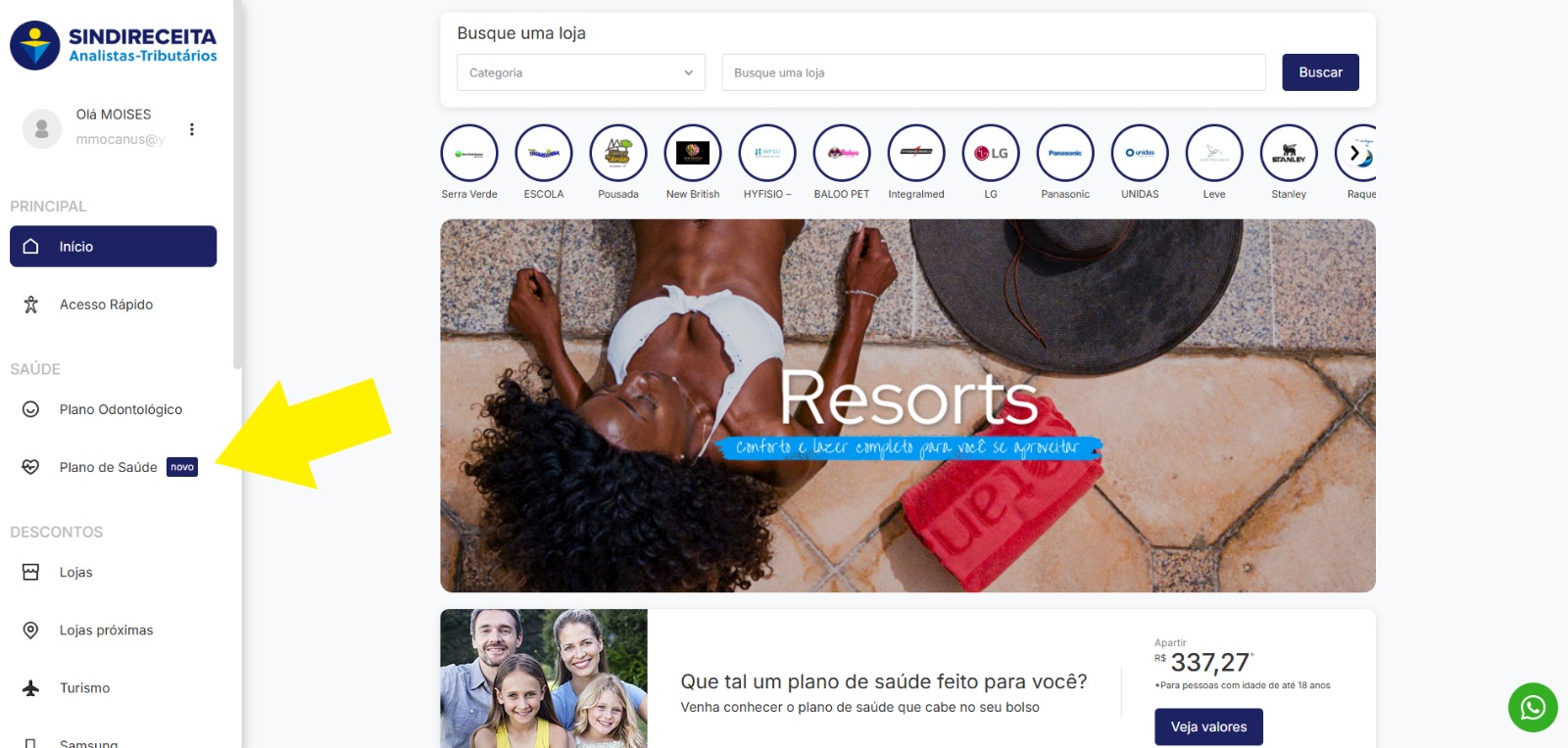 Faça login no site do Clube de Benefícios do Sindireceita.