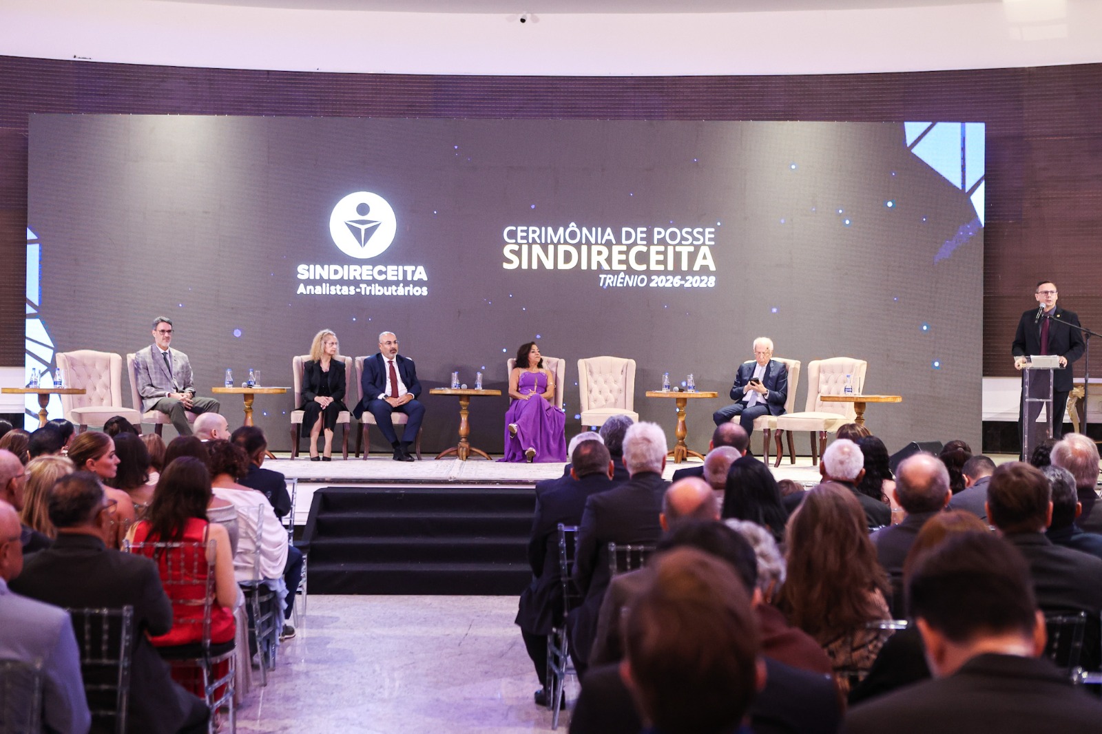 A Cerimônia de Posse da nova Diretoria Executiva Nacional (DEN) do Sindireceita para o triênio 2026/2028, realizada nesta quarta-feira (4), reuniu parlamentares, dirigentes sindicais de diversas entidades e autoridades que reforçaram a importância do trabalho desenvolvido pelos Analistas-Tributários da Receita Federal do Brasil e desejaram êxito à nova gestão.
