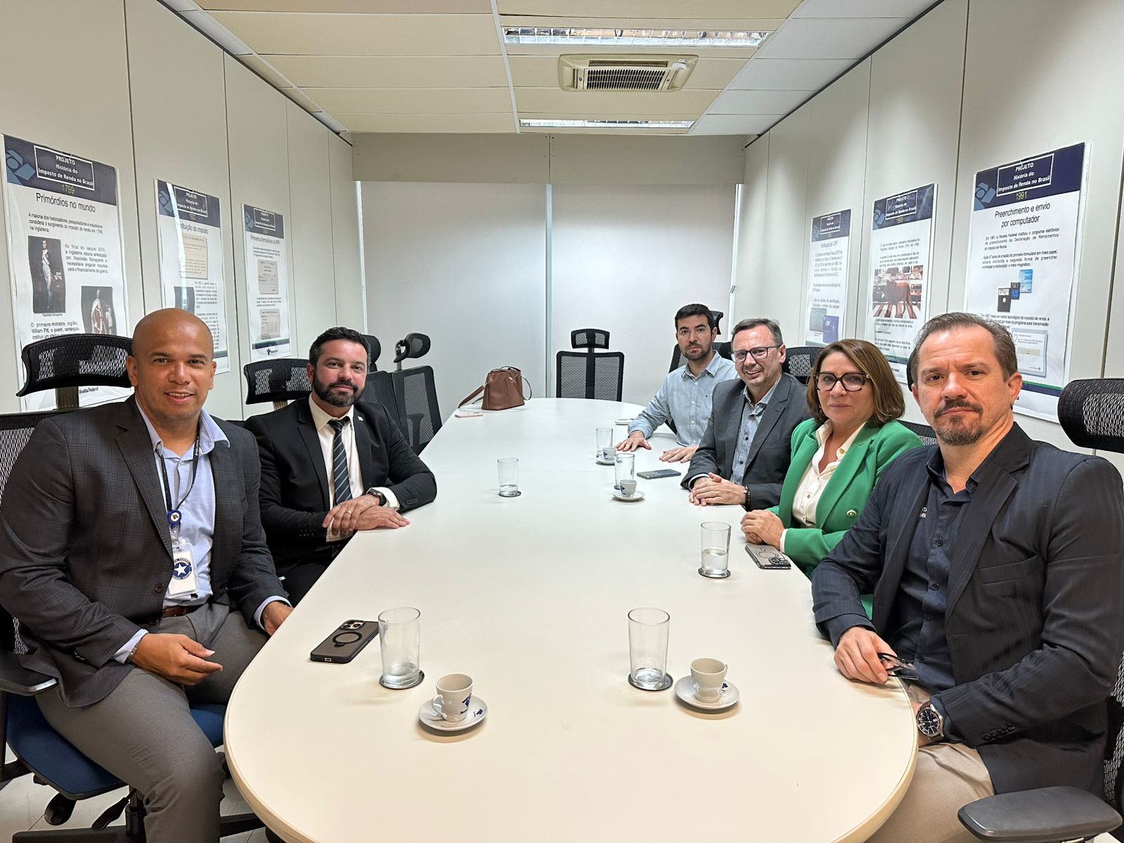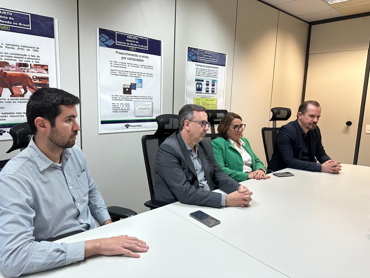 Representando as Analistas-Tributárias e os Analistas-Tributários, estiveram presentes a diretora de Assuntos Aduaneiros do Sindireceita, Mariluce Vilela; o diretor de Defesa Profissional, Alexandre Magno; e o presidente do CNRE, Gerônimo Sartori. Pela Receita Federal, participaram o coordenador-geral da Corep, Raphael Souza, e o assessor de gabinete, Aldo Santana.