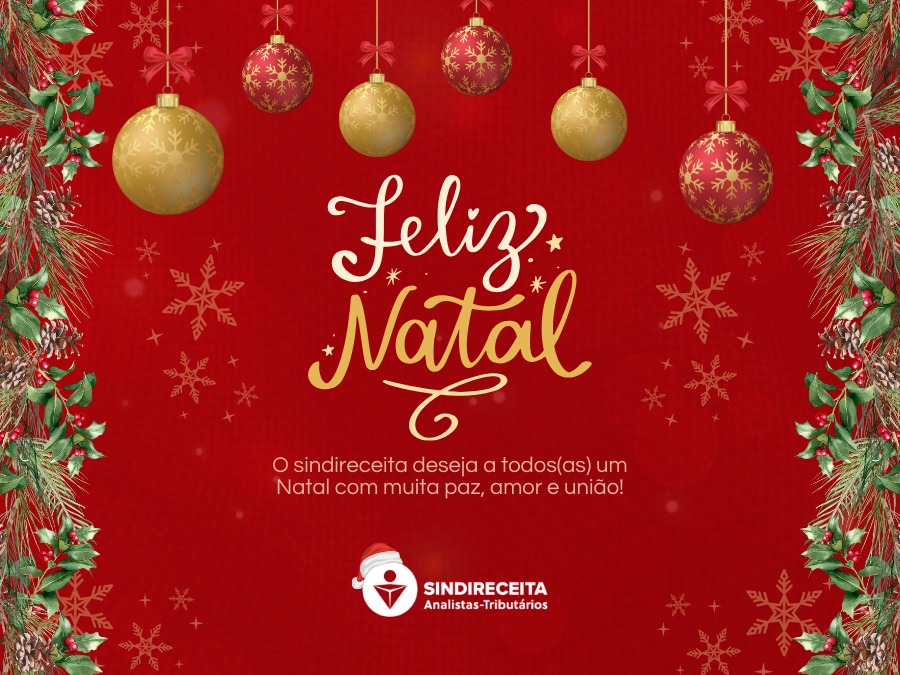 A Diretoria Executiva Nacional do Sindireceita deseja a todas as Analistas-Tributárias, a todos os Analistas-Tributários, a todos filiados pensionistas e a seus familiares um Natal de profunda paz, amor e renovação. Que este período seja um refúgio de felicidade e um momento para recarregar as energias ao lado de quem amamos.