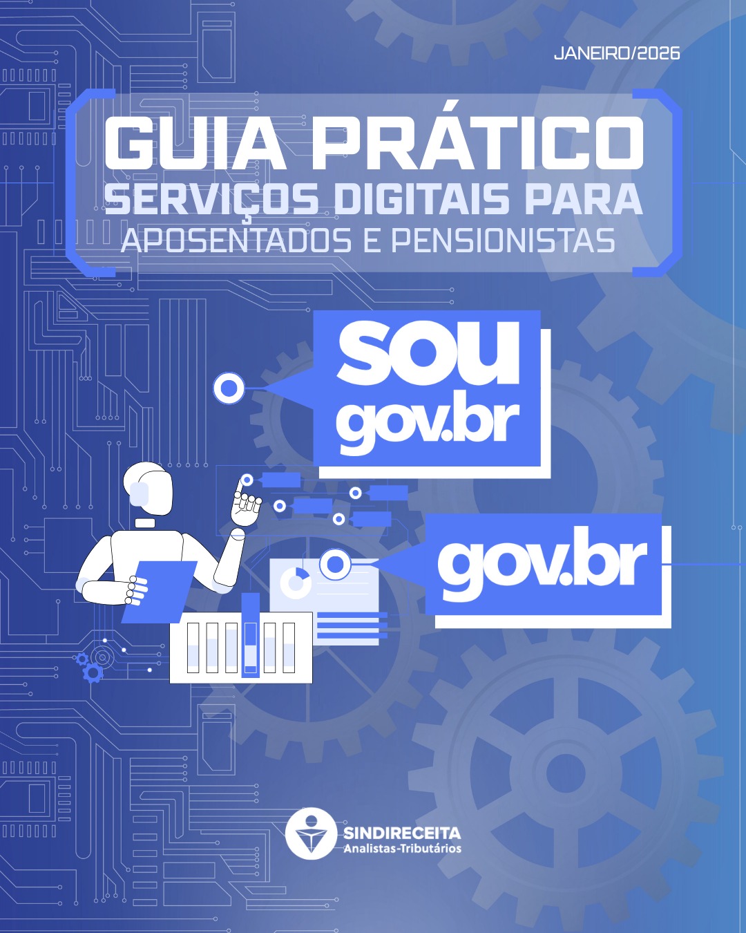 Colega aposentado e aposentada: temos mais uma novidade dedicada especialmente para você! Como parte das ações da Semana dos Aposentados e Aposentadas 2026, o Sindireceita, por meio das diretorias de Aposentados e Pensionistas (DAP) e de Comunicação (DCO), lança nesta quinta-feira, dia 22, a cartilha “Guia Prático – Serviços Digitais para Aposentados e Pensionistas: SOUGOV.BR e GOV.BR”. O material pode ser baixado em formato PDF ou lido virtualmente pelos filiados e filiadas em todo o Brasil.