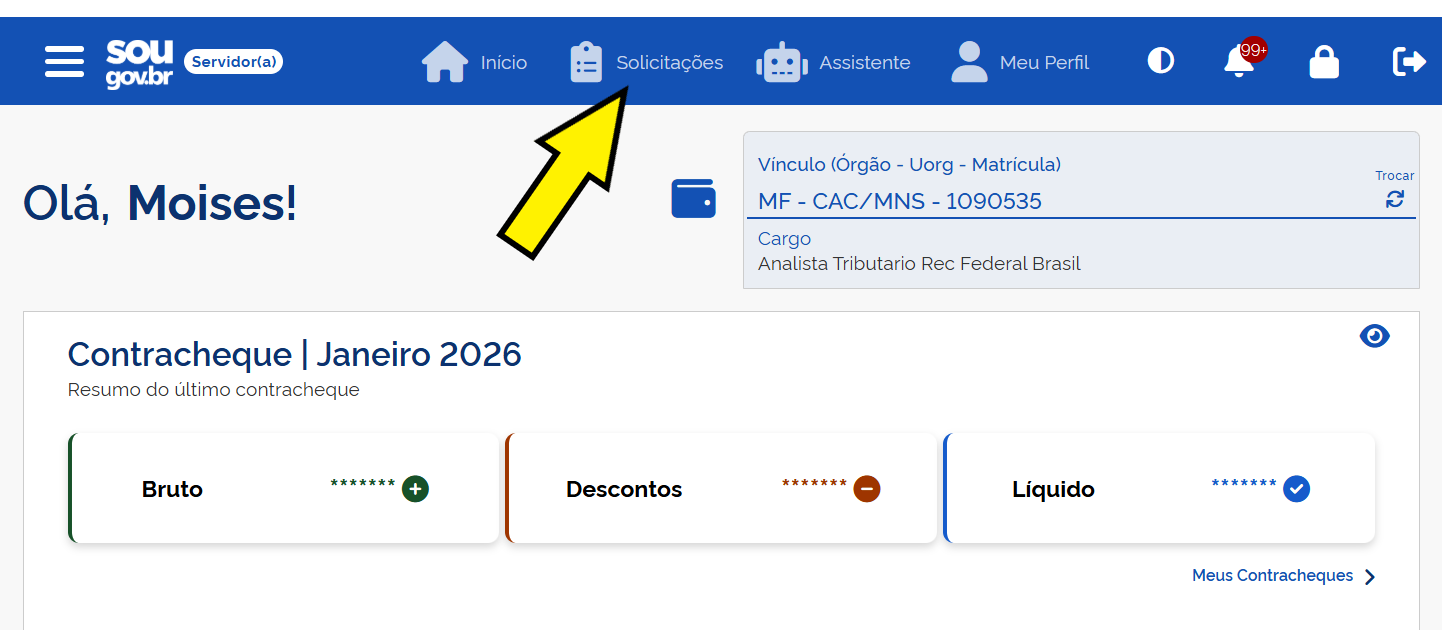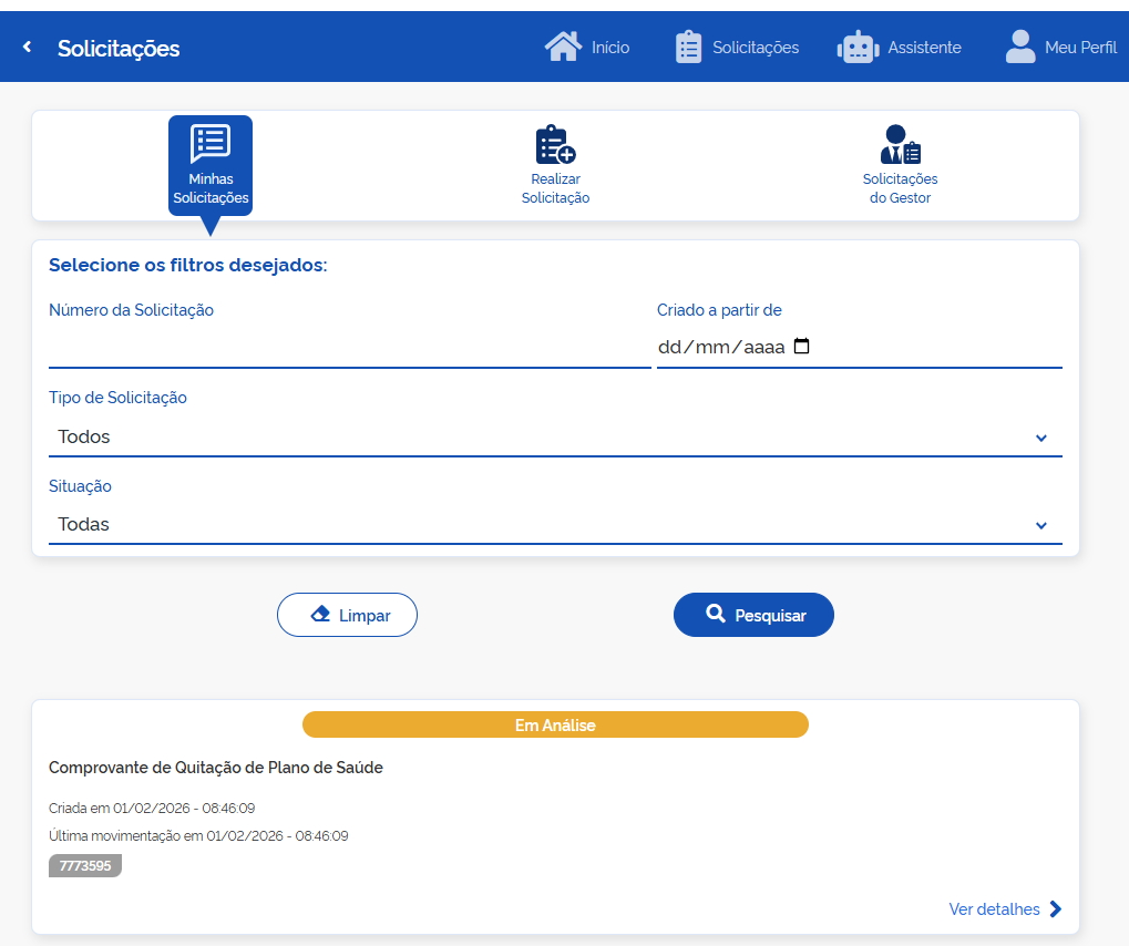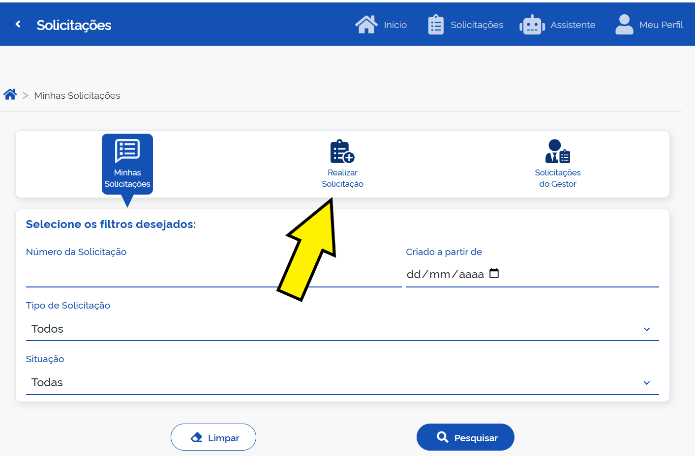 • Localize a seção "Solicitações": Dentro do sistema, navegue até a área de solicitações.