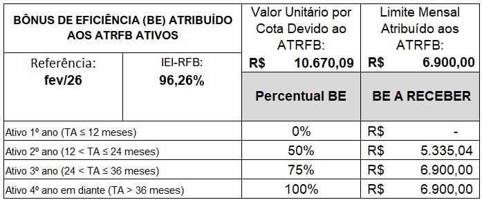 Veja planilha para verificação do Bônus de Eficiência de Fevereiro/2026