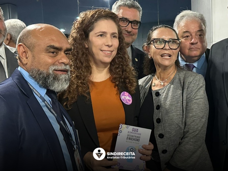 Como parte das ações da Semana da Mulher, representantes do Sindireceita entregaram a cartilha “Guia de Conscientização: Desconstruindo o Machismo no Cotidiano e no Trabalho” à ministra da Gestão e da Inovação em Serviços Públicos, Esther Dweck, ao secretário de Relações de Trabalho do MGI, José Lopez Feijóo, e ao senador Randolfe Rodrigues (PT-AP), reforçando o compromisso da entidade com a promoção da equidade de gênero no serviço público.