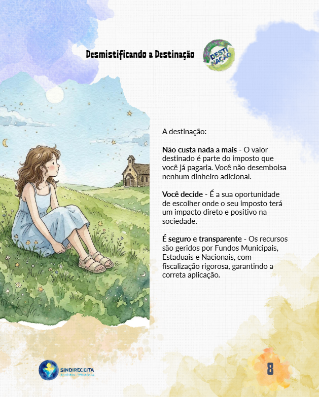 "Seu imposto não é apenas um número; é uma oportunidade de construir um Brasil mais justo e solidário. Faça a sua parte! Destine seu imposto de Renda e sinta a alegria de transformar vidas!", destaca a Diretoria Executiva Nacional (DEN) do Sindireceita.