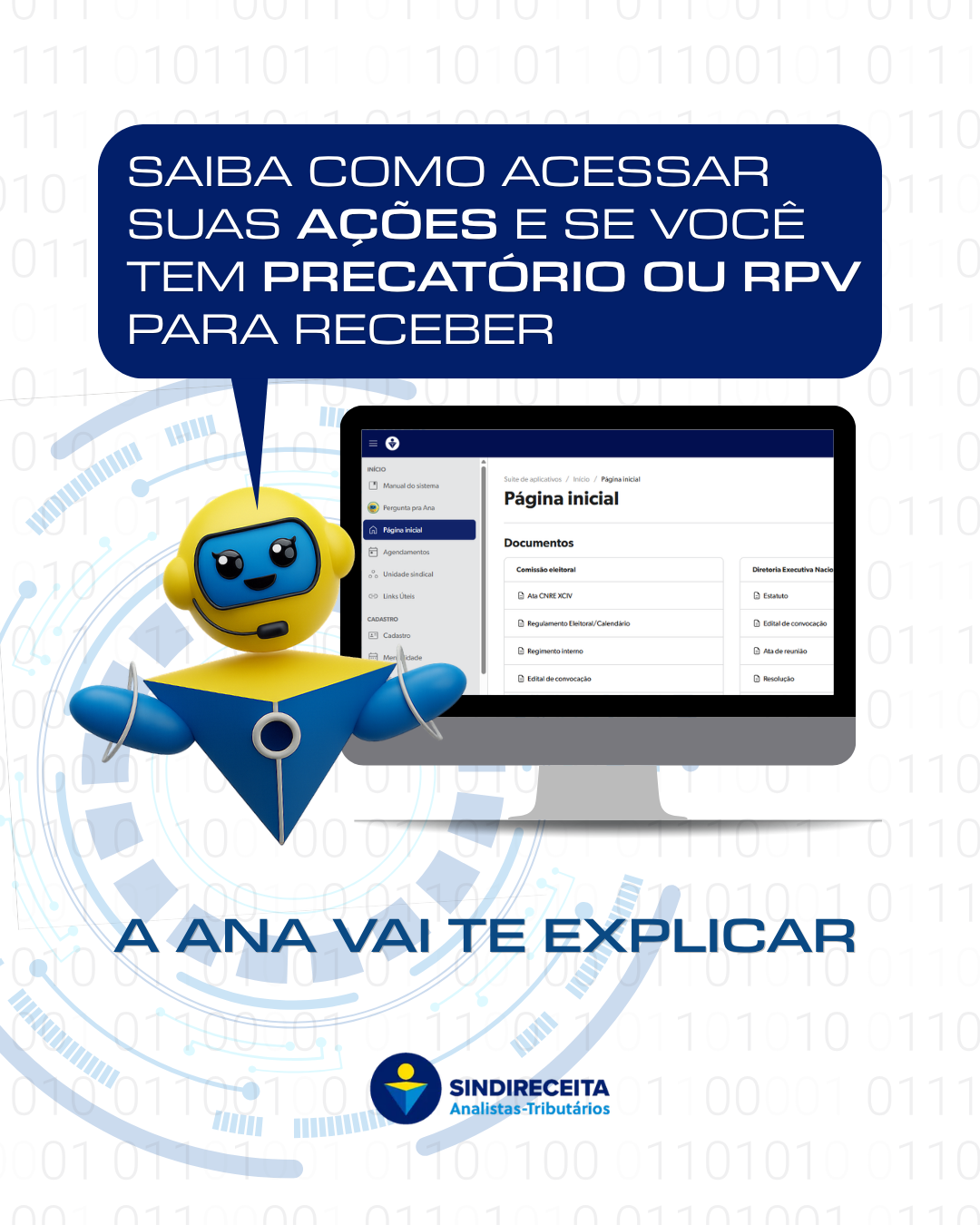 Além da consulta pelo portal do Sindicato, a cartilha também orienta os filiados sobre a possibilidade de acompanhamento nos portais dos Tribunais Regionais Federais, com indicação dos acessos ao TRF1, TRF2, TRF3, TRF4 e TRF5. Outro destaque do material é a possibilidade de utilizar a Ana, assistente virtual do Sindireceita, para esclarecer se há precatório ou RPV expedido em nome do filiado para recebimento em 2026, ampliando os canais de atendimento e facilitando o acesso às informações jurídicas.