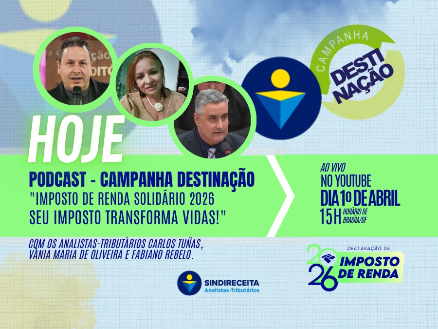 Acompanhe ao vivo o Podcast do Sindireceita sobre a Campanha Destinação, hoje, às 15h!