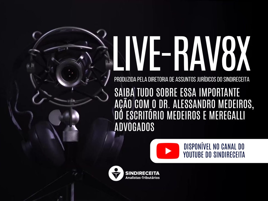 A Diretoria de Assuntos Jurídicos (DAJ) informa que disponibilizou, no canal do Sindireceita no YouTube, a íntegra da Live sobre a ação da RAV 8X, realizada no dia 25 de março (confira aqui). Durante a transmissão ao vivo, os advogados da ação apresentaram um histórico e responderam as principais dúvidas de filiados e filiadas de diversas regiões do Brasil que acompanharam a Live.