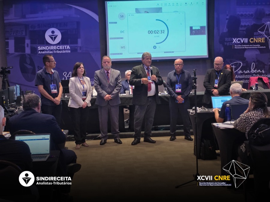Foi eleita na tarde desta sexta-feira, dia 10, a nova Mesa Diretora do Conselho Nacional de Representantes Estaduais (CNRE) do Sindireceita para o triênio de 2026 a 2028. A eleição ocorreu durante o primeiro dia de trabalho da XCVII Reunião Ordinária do Conselho, que será realizada até o dia 12 de abril, em Brasília/DF.