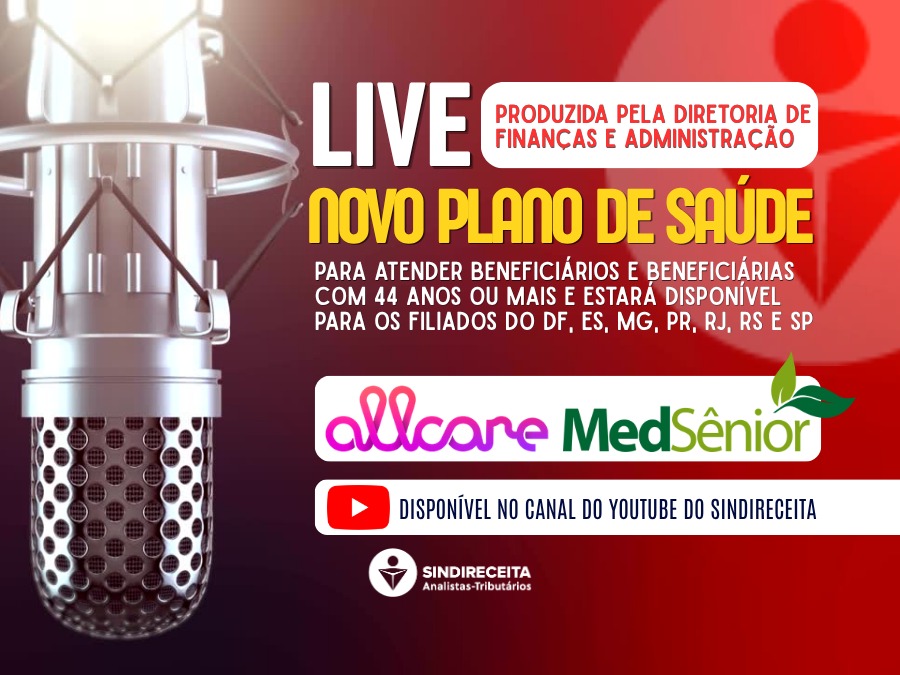 A Diretoria Executiva Nacional (DEN) informa que disponibilizou, nesta sexta-feira, dia 17, a íntegra da Live sobre o novo plano de saúde oferecido aos filiados e filiadas ativos e aposentados por meio do Clube de Benefícios do Sindireceita, em parceria com a Allcare e MedSênior. A transmissão ao vivo foi divulgada pela DEN no canal do Sindicato no YouTube (acesse aqui).