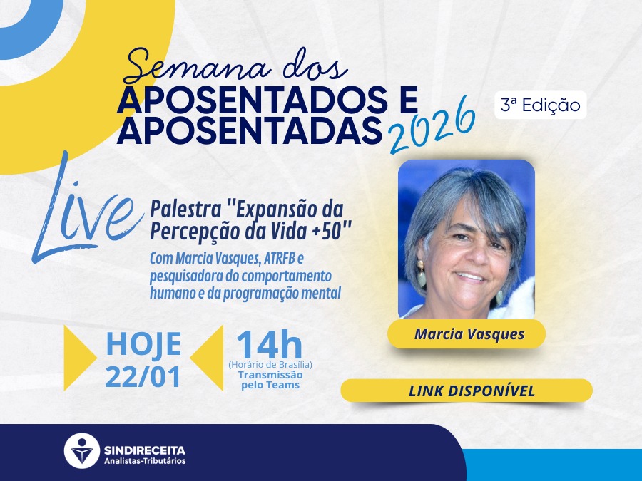 Participe da Live/Palestra com a ATRFB Márcia Vasques hoje, ...