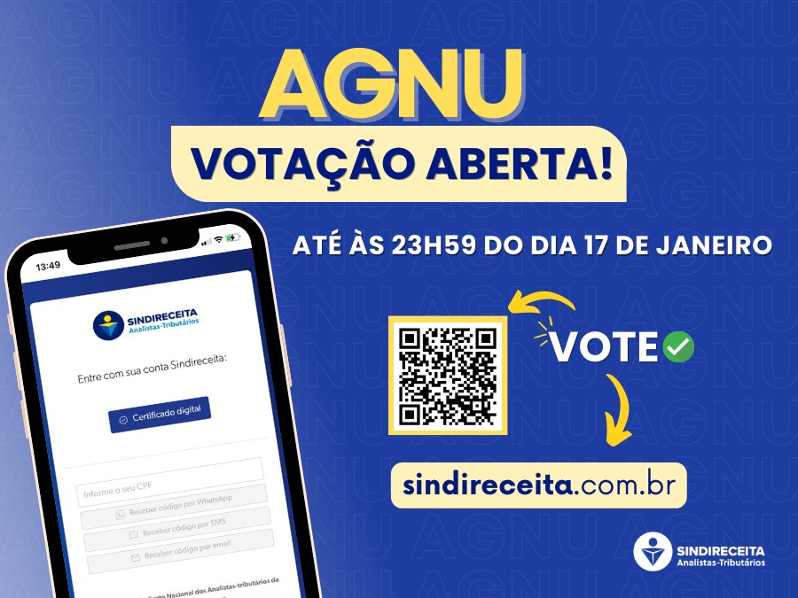 Os filiados e filiadas do Sindireceita em todo o Brasil têm de 10h de hoje, dia 9, até as 23h59 do dia 17 de janeiro de 2025 para registrar seu voto.