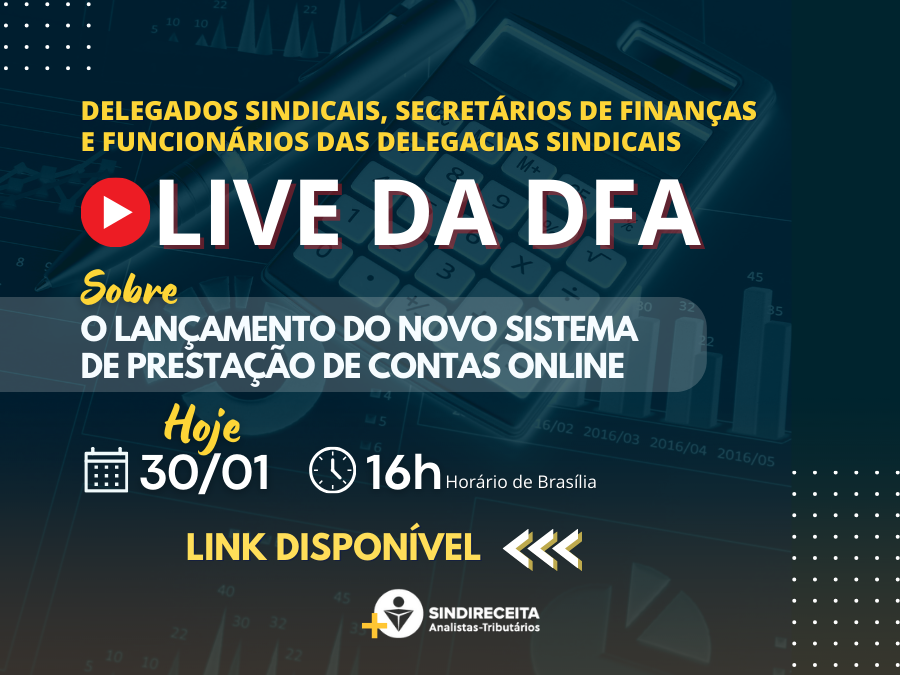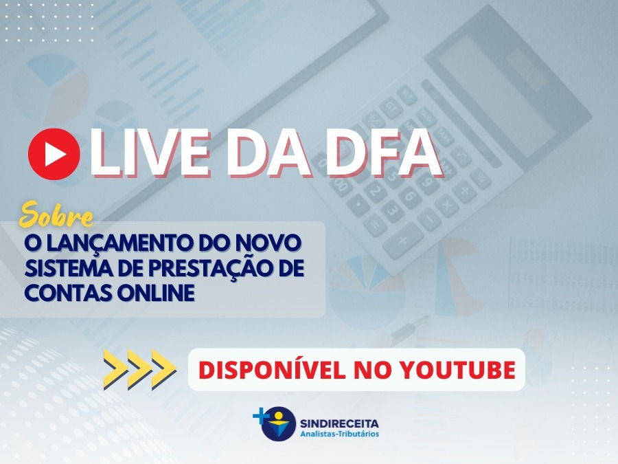 Live da DFA sobre o novo sistema de prestação de contas já está disponível no Youtube do Sindireceit...