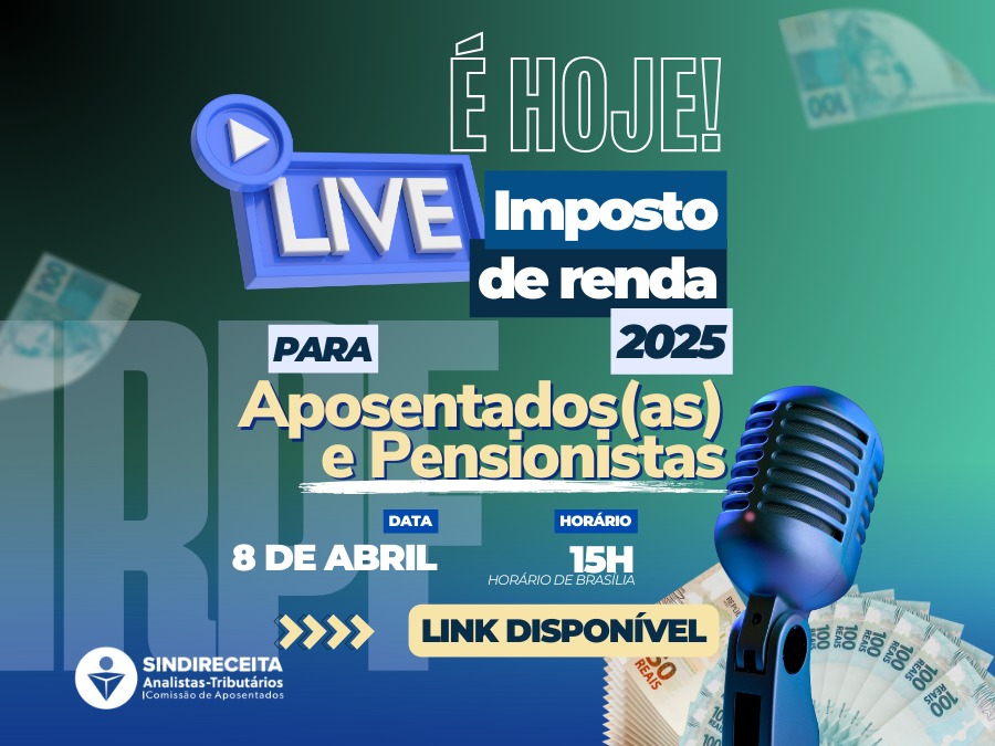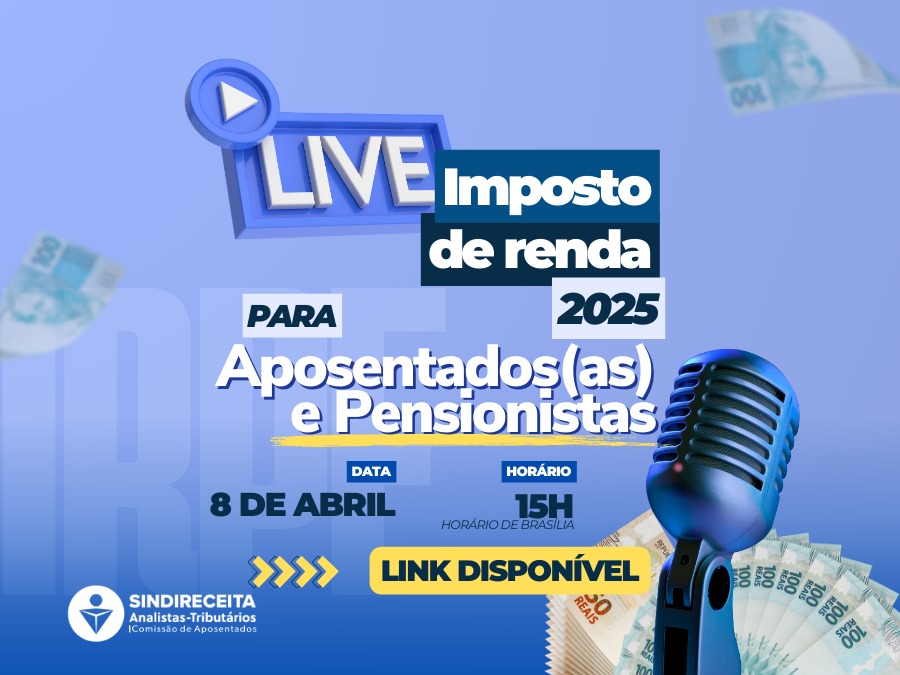 Live será realizada pela Comissão de Aposentados e Pensionistas, em conjunto com a Diretoria de Aposentados e Pensionistas do Sindireceita.