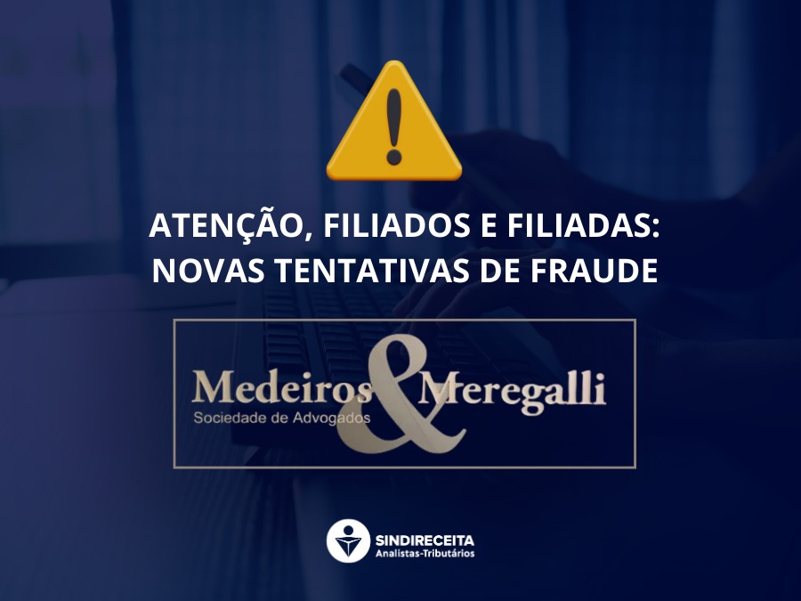 A Diretoria de Assuntos Jurídicos alerta aos filiados e filiadas sobre nova tentativa de fraude utilizando o nome do escritório Medeiros e Meregalli.