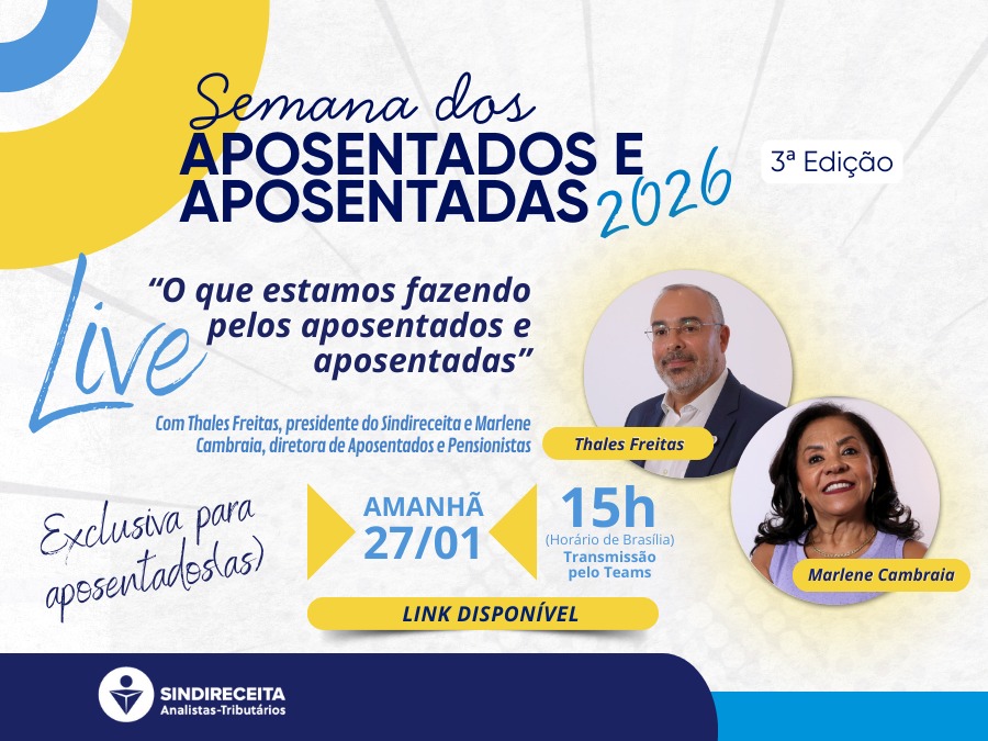 Transmissão ao vivo será realizada às 15h desta terça-feira, dia 27, com o tema “O que estamos fazendo pelos aposentados e aposentadas?”