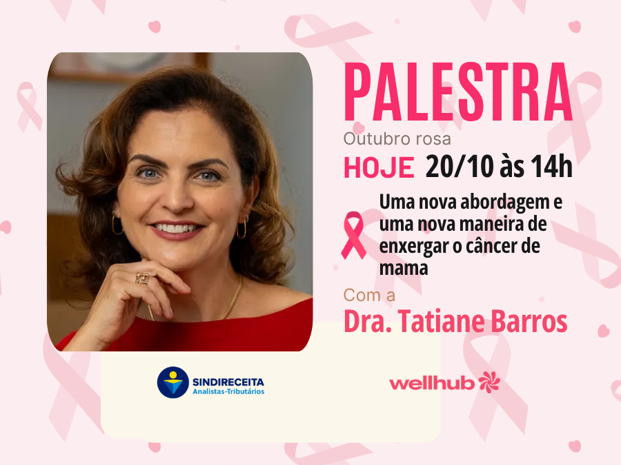 Hoje, 20/10, teremos palestra: Uma nova abordagem e uma nova maneira de enxergar o câncer de mama.