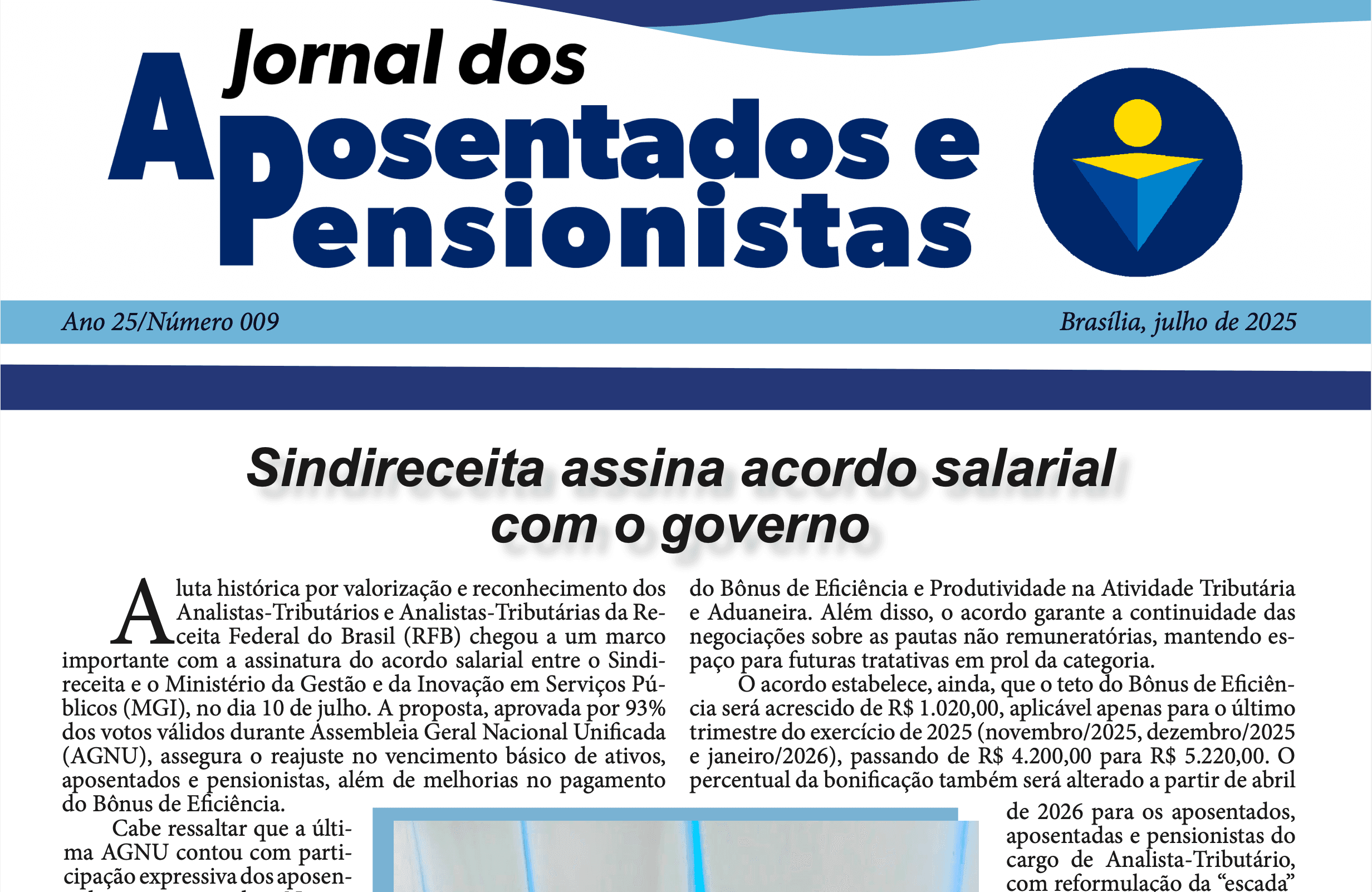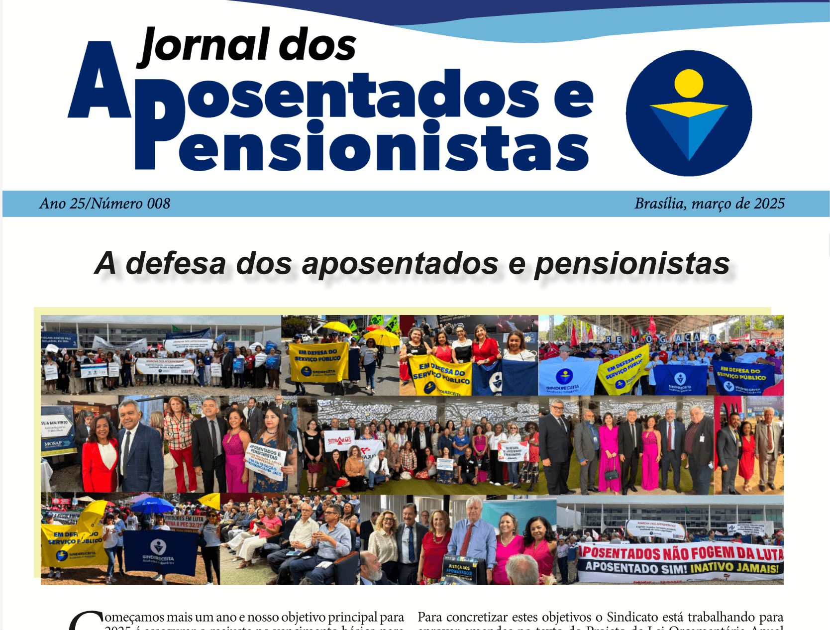 O Jornal dos Aposentados e Pensionistas reúne as principais notícias de interesse da categoria; análises conjunturais; detalhes sobre o andamento de ações judiciais e representações do Sindicato; entrevistas; entre outras informações. O periódico é trimestral e disponibilizado nas versões impressas, que são enviadas aos endereços dos colegas filiados cadastrados, e virtual, na forma do Jornal Online, que fica disponível para leitura e download abaixo.